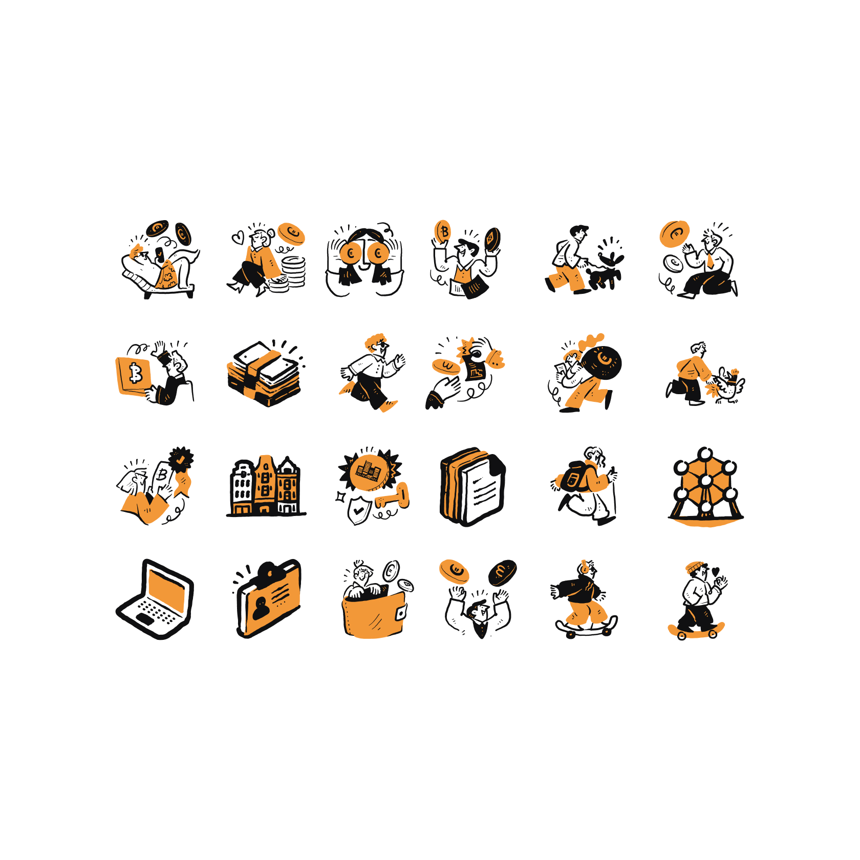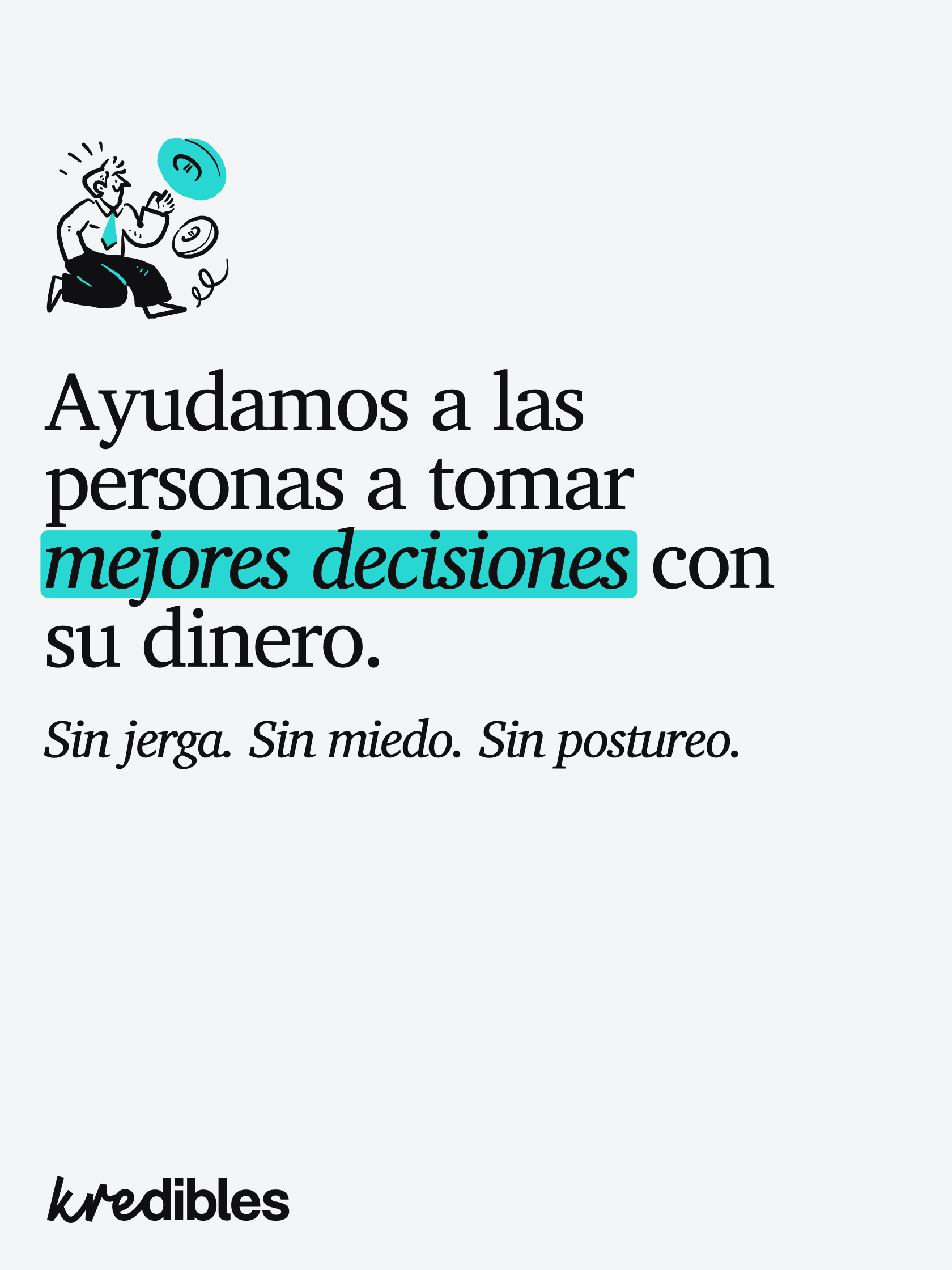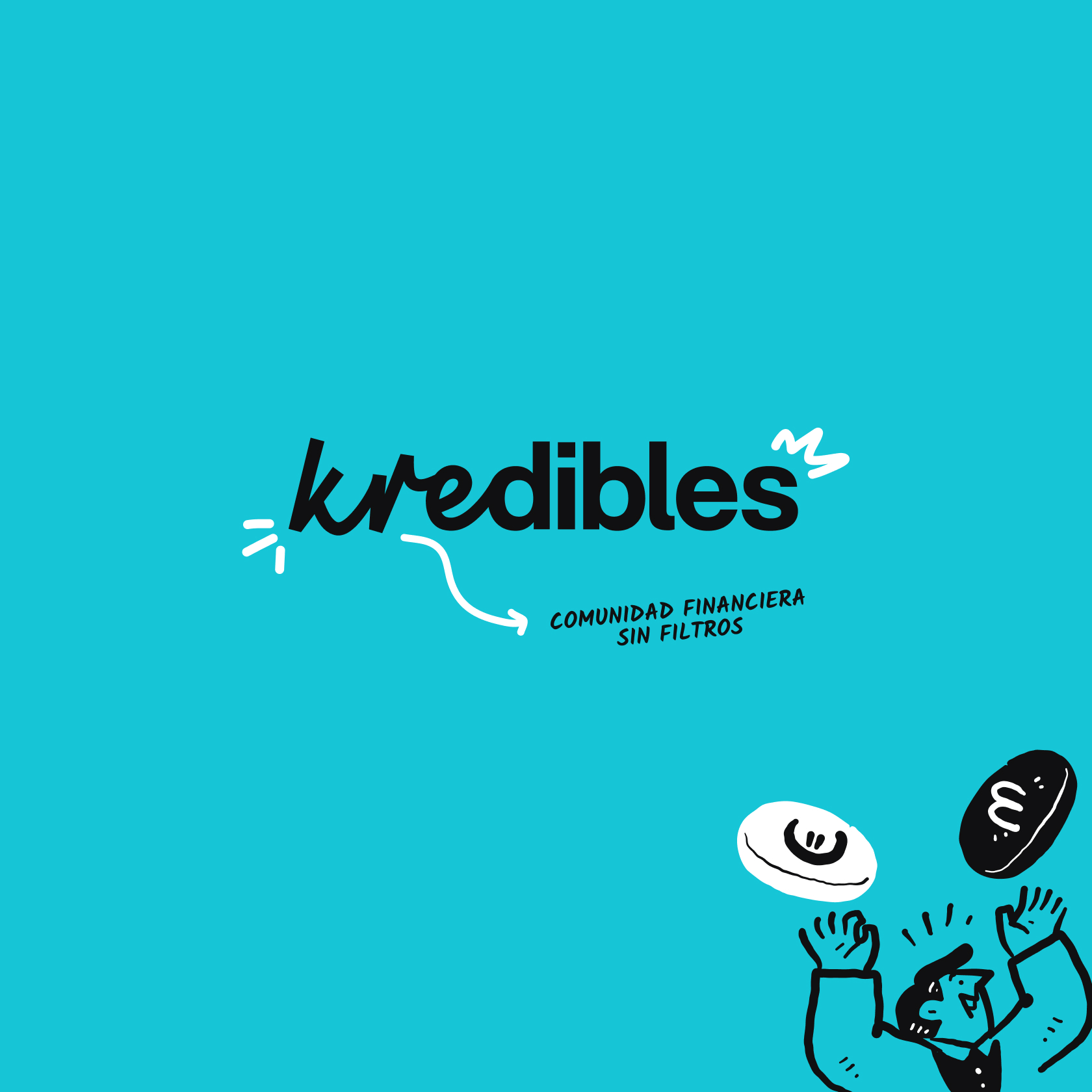 Para terminar de humanizar la marca, incorporamos ilustraciones que funcionan como una herramienta narrativa. Estos dibujos ayudan a traducir conceptos financieros complejos en algo visual y comprensible. El resultado es una identidad que no se limita a dar datos, sino que educa y despierta la curiosidad. Kredibles se posiciona así como un punto de encuentro dinámico donde el conocimiento se construye en comunidad con un tono valiente y honesto.